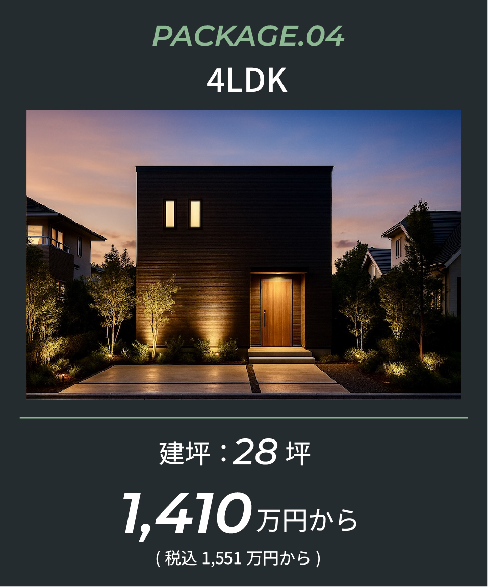 様々な間取りの平屋から、二階建ての2LDK、3LDK、4LDKまで、ライフスタイルに合わせて100通り以上の中から自分好みにカスタマイズが可能です。