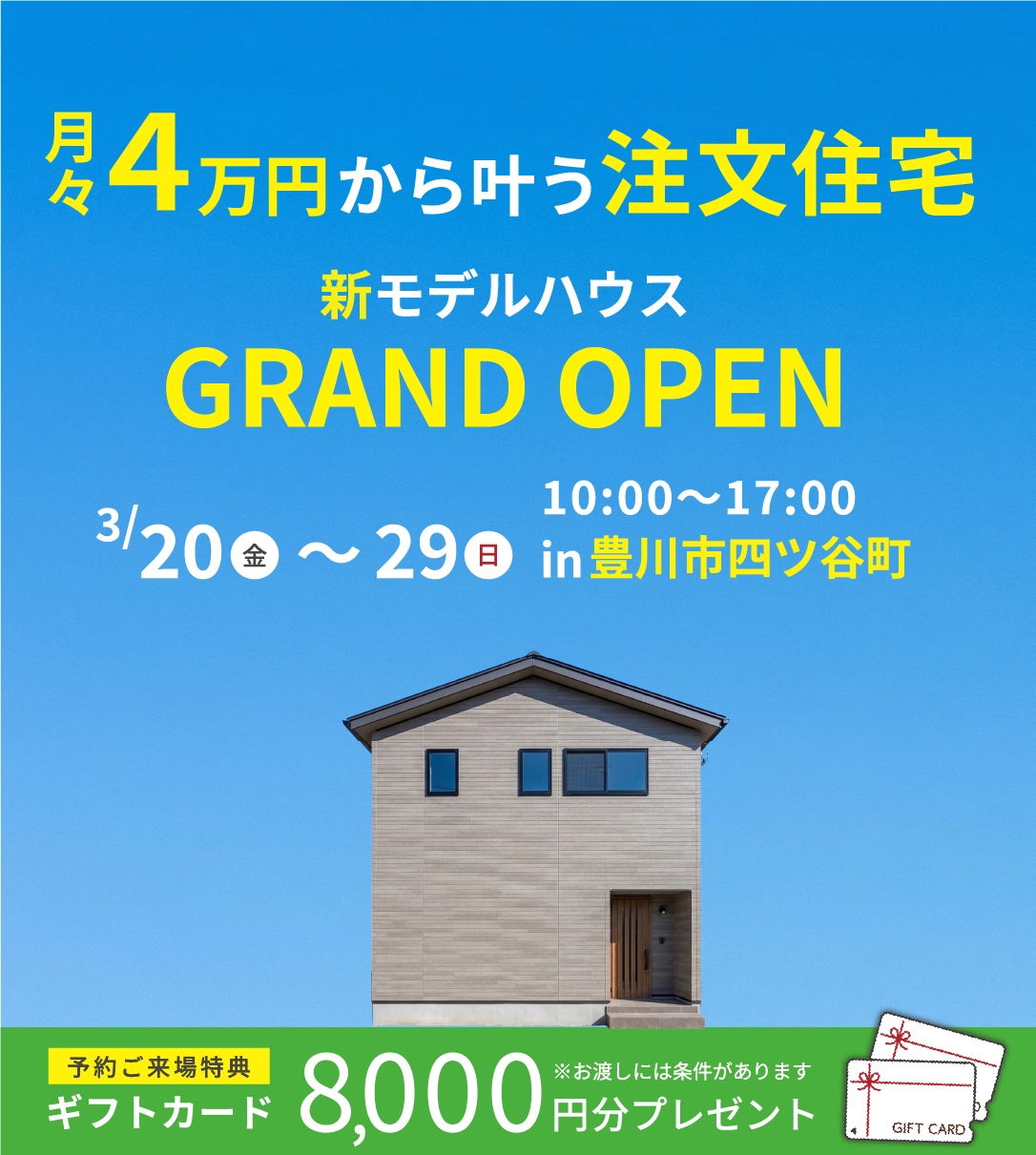 • 弊社施工エリア内(愛知県・岐阜県)での家づくりをご検討中の方が対象です。(既に他社様でご契約されている方、同業他社様は対象外となります)