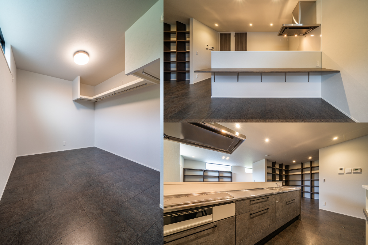 キッチンから収納までが一直線につながっていることで、「取りに行く・片付けに行く」手間がほとんどなくなります。仕事から帰った後の料理でも無駄な動きが減り、サッと作ってパッと片付けられる、毎日の使い勝手の良さを実感できる空間です。